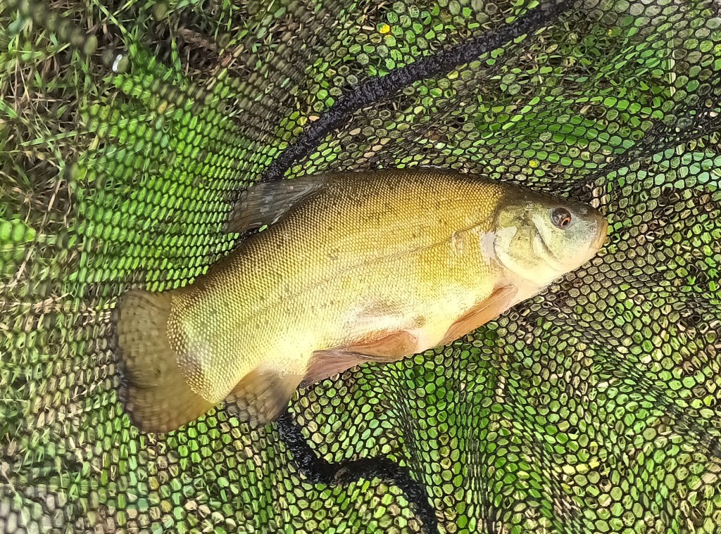 A 8oz Tench caught on 12 July 2024, one of the ones supplied by the EA in 2023